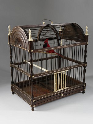 Whaleman Made American Rosewood and Whalebone Scrimshaw Bird Cage, circa 1850