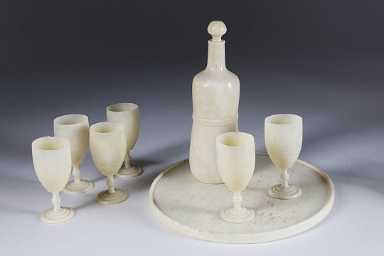 Scarce Whaleman Carved Whale Ivory and Whalebone Liqueur Service, circa 1870