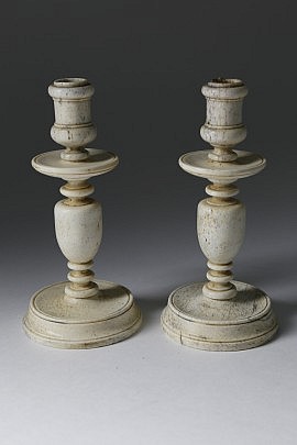 Pair of Scarce Whaleman Made Whalebone Candlesticks, circa 1870