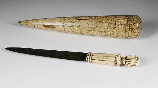 Whaleman Carved Whalebone Fid, circa 1840-50 and Whaleman Made Baleen and Whale Ivory Knife, circa 1870