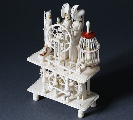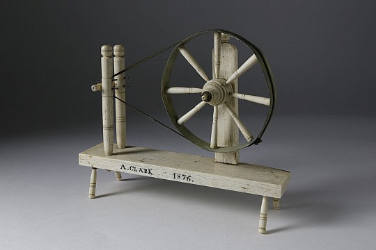 Rare Whalebone and Tin Spinning Wheel Model, inscribed “A. Clark 1876”