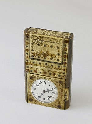 French Scrimshaw and Studded Horn Book Watch Holder and Snuff Box, 18th century