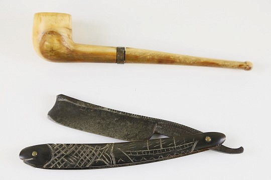 Two Sailor’s Accessories – Whale Ivory Pipe and Baleen Straight Edge
