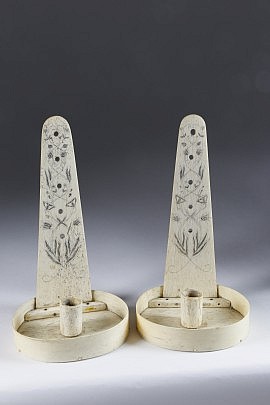 Rare and Most Scarce Pair of Whaleman Made Scrimshaw Whalebone Candle Sconces, circa 1850
