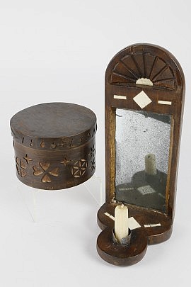 Whaleman Made Pierced Baleen Ditty Box by Isaac Tony, 1805 and Candle Sconce