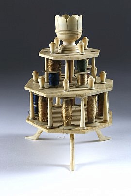 Whaleman Made Whale Ivory and Whalebone Spool Caddy