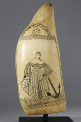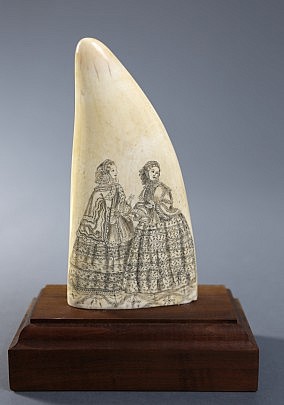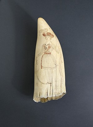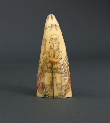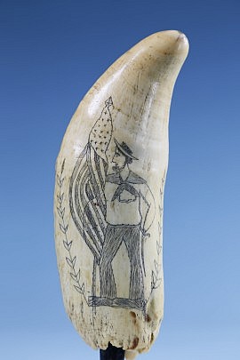A Fine Lady Liberty Whaler Scrimshaw and Polychrome Whale Tooth