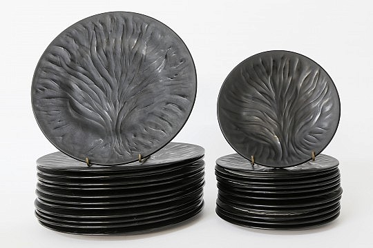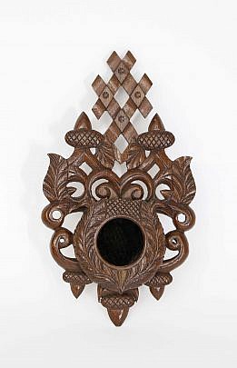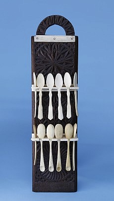 Walrus Ivory and Carved Oak Hanging Spoon Rack with 12 Assembled Bone Spoons