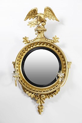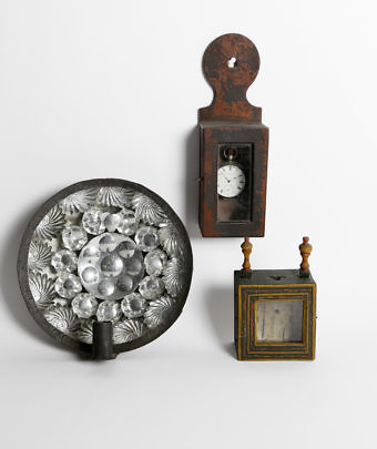 American Reflective Candle Sconce and Two American Folk Art Paint Decorated Hanging Watch Hutches
