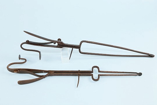 Whale Ivory Letter Opener, circa 1850 and Whalebone Sugar Tongs, circa 1870