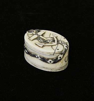 Whaleman Bas Relief Carved Whale Ivory Puzzle Box