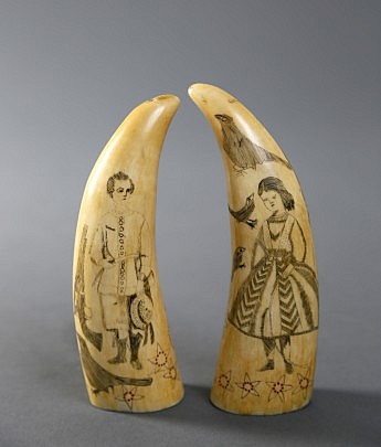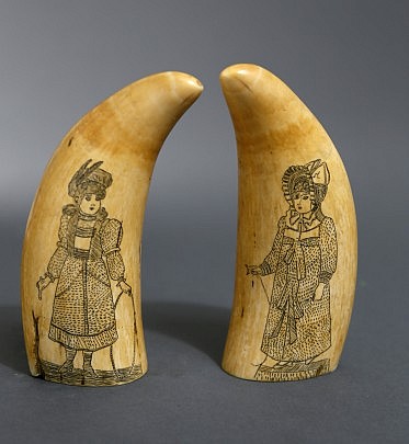 Pair of Whaler Scrimshawed Whale’s Teeth