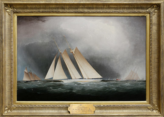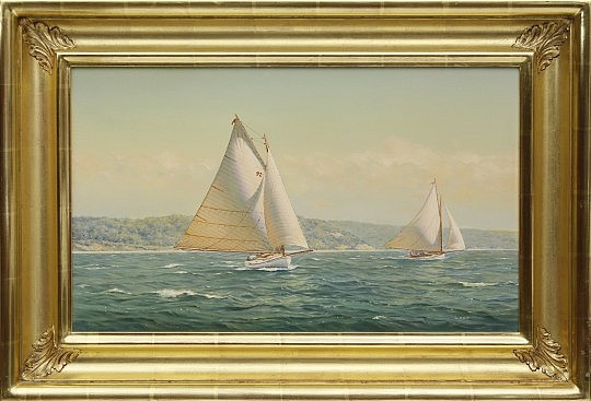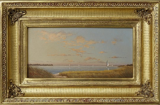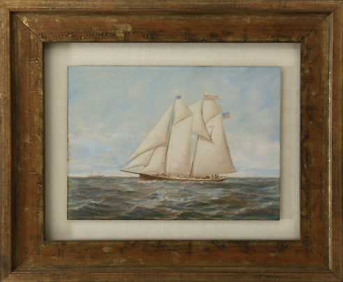 Antonio Jacobsen Oil on Artist Board “Onaway of Boston, 1915”