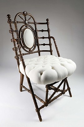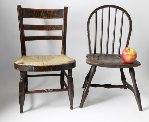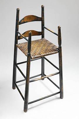 Scarce Whaleman Made Whalebone Ladderback Rush Seat Miniature Side Chair, circa 1840