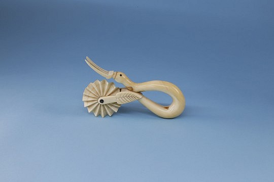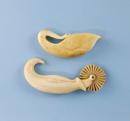 Whaleman Carved Whale Ivory Study of a Preening Swan and Whaleman Made “Mother’s Helper” Whale Ivory Pie Crimper