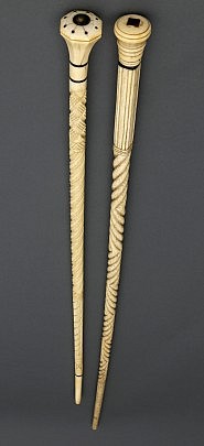 Pair of Whalebone and Whale Ivory Knitting Needles, circa 1840-60