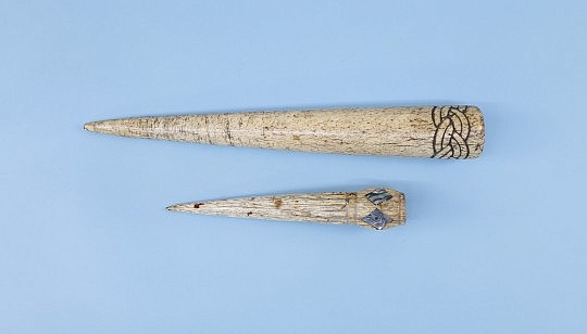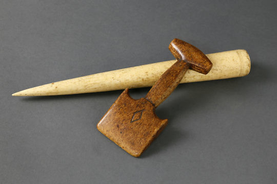 Whaler Turned Whalebone Fid and Whaler Carved Whalebone Seam Rub