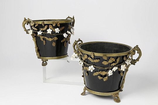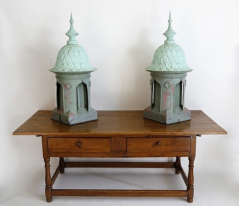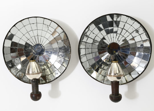 Pair of American Tin Reflective Candle Sconces and Two American Paint Decorated Storage Boxes