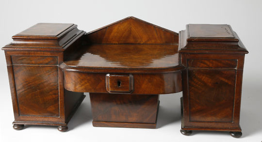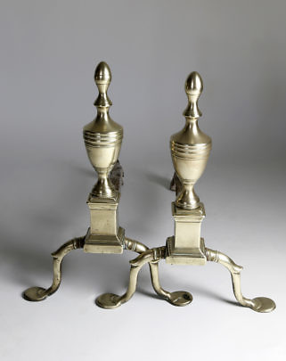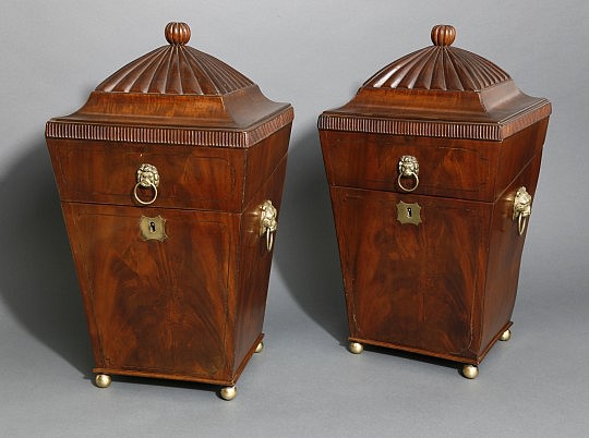 English Fruitwood Pear Form Tea Caddy and Pair of George Grove Signed English Queen Anne Brass Candlesticks