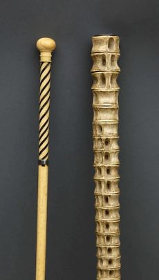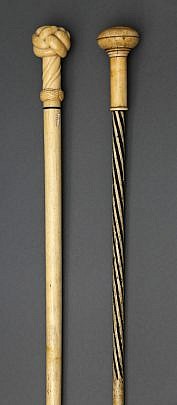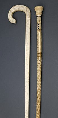 Whaler Carved Whale Ivory and Whalebone Youth Walking Stick and Shark Vertebrae Walking Stick