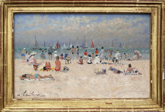 André Hambourg Oil on Canvas “Bains De Soleil a la Plage”