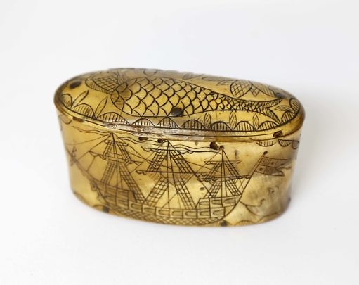 Fine English Carved and Scrimshawed Horn Snuff Box