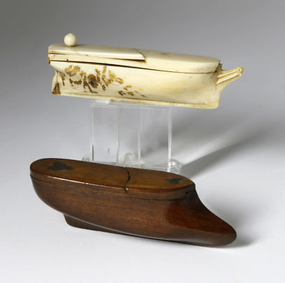 Whaleman Carved Ship Hull Snuff Box, circa 1850