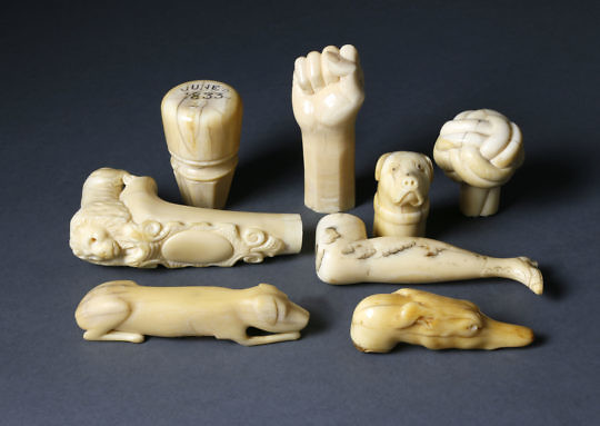 Collection of 8 Whaler Made Cane and Walking Stick Grips