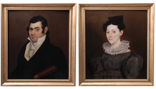 Pair of Nantucket Portraits Depicting Captain Robert Joy and Sally Hussey Joy