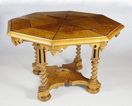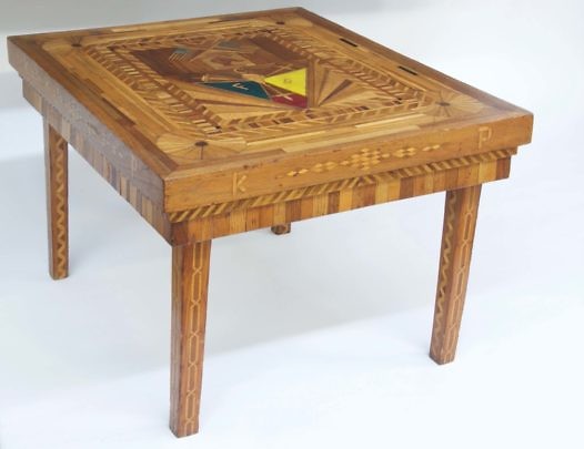 Penitentiary Folk Art Multi-wood Inlaid Side Table, circa 1930s