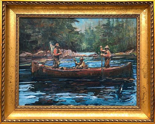 David Lazarus Oil on Canvas “Three Fisherman in a Canoe”