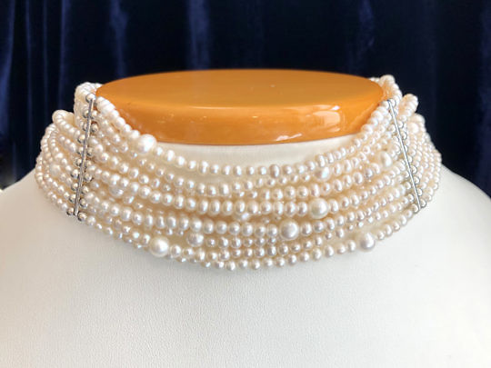 10-Stand White Fresh Water Seed Pearl Collar Necklace
