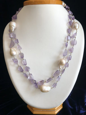 16mm x 22mm Fresh Water Baroque Pearl and Amethyst Nugget Necklace
