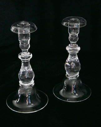 Pair of Signed Steuben Clear Glass Bell Base Candlesticks