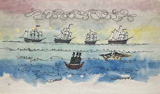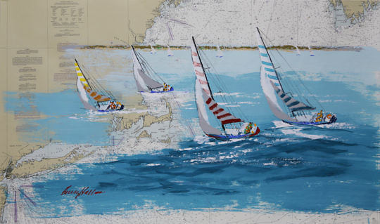 Kerry Hallam Acrylic on Chart “Sailing in Long Island Sound”