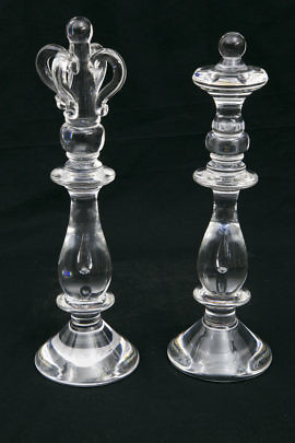 Pair of Signed Steuben Glass King & Queen Chess Pieces