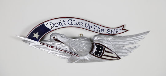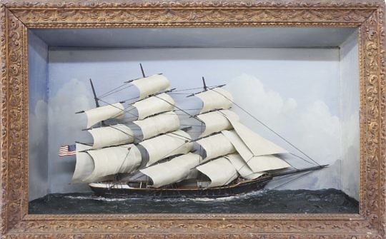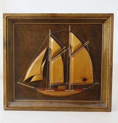 Carved Wood Schooner Shadow Box with Secret Drop Front Which Reveals Cocktail Bar
