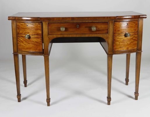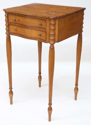 Antique Boston Bench Made Tiger Maple Federal Style Two-Drawer Work Stand