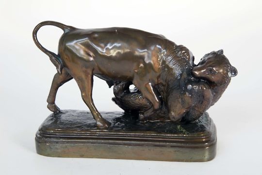 Copper Bear & Bull Sculpture from the Original by Isidore Bonheur