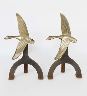 Pair of Cast Iron and Brass Flying Geese Andirons
