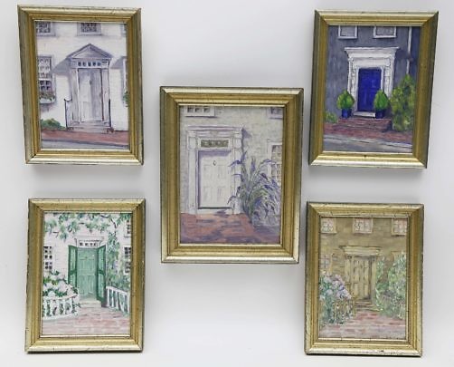 Collection of Five M.V. Brouwer Oils on Artist Boards “Nantucket Doorways”