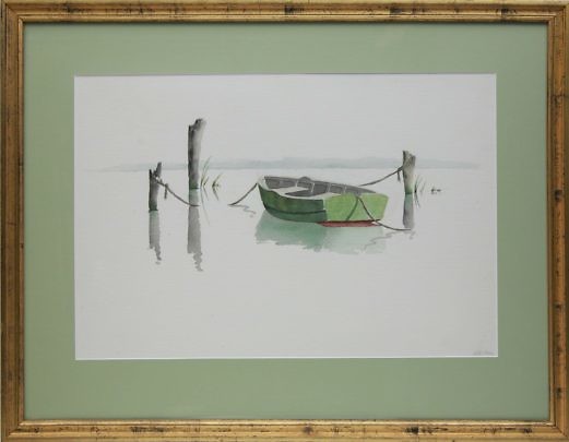 Doris and Richard Beer Watercolor on Paper “Lone Green Dory”