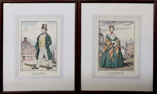 Pair of Hand Colored and Pencil Signed Edgar Jenny Lithographs “The Ship Owner” and “The Ship Owners Lady”