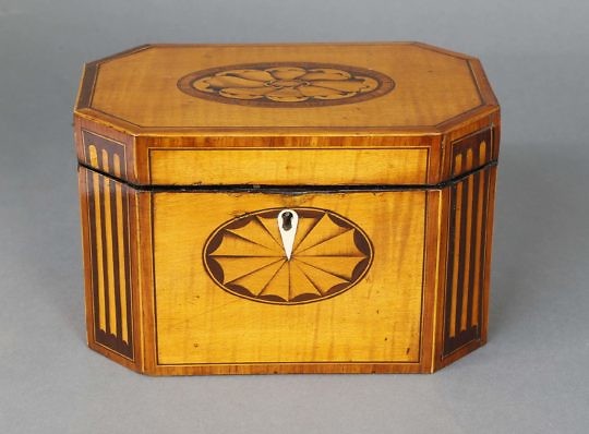 Regency Satinwood Canted Corner Double Compartment Tea Caddy, 19th Century