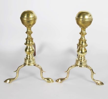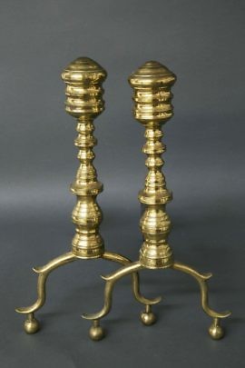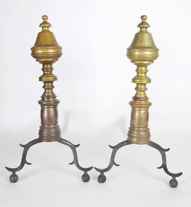 Pair of American Petite Multi-turned Brass Andirons, circa 1800