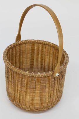 Tall Narrow Round Swing Handle Nantucket Basket by Hobbyist Henry Huyser, 1981