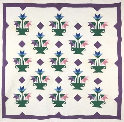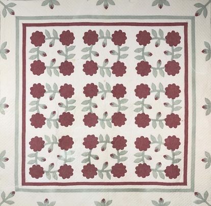 1920s Vintage Rose of Sharon Wreath Applique Quilt