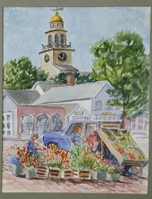Vintage Nantucket Watercolor “View of the Customs House and Fountain, Lower Main Street”