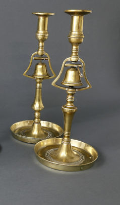 Pair of English Brass Tavern Candlesticks, 19th Century