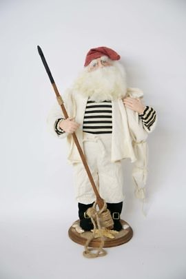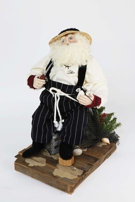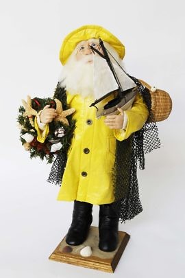 Santa Claus Fisherman in Yellow Slicker with Fishing Net and Nantucket Basket